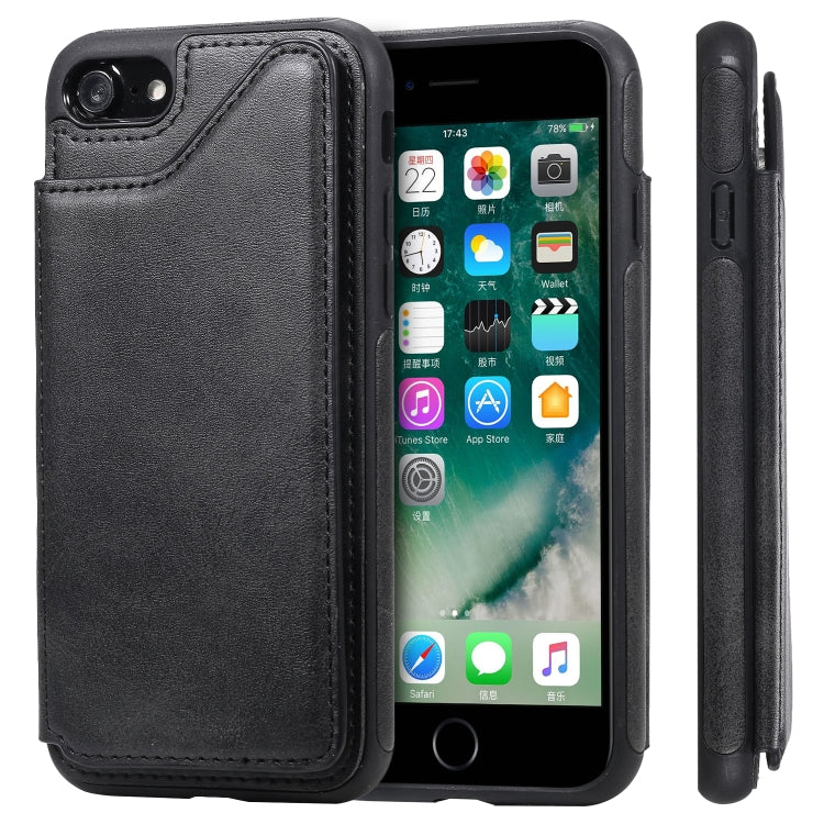 Funda Protectora para iPhone 7/8 con Textura de Pantorrilla a Prueba de Golpes, Soporte, Ranuras para Tarjetas y Marco (Negro)