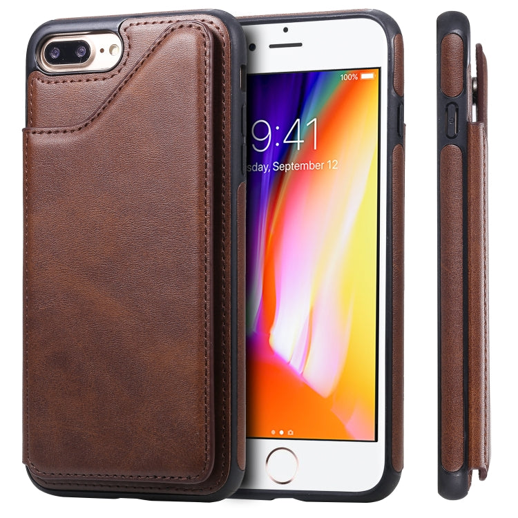Funda Protectora para iPhone 7 Plus 8 Plus Textura Pantorrilla Soporte Ranuras Tarjetas Marco (Café)