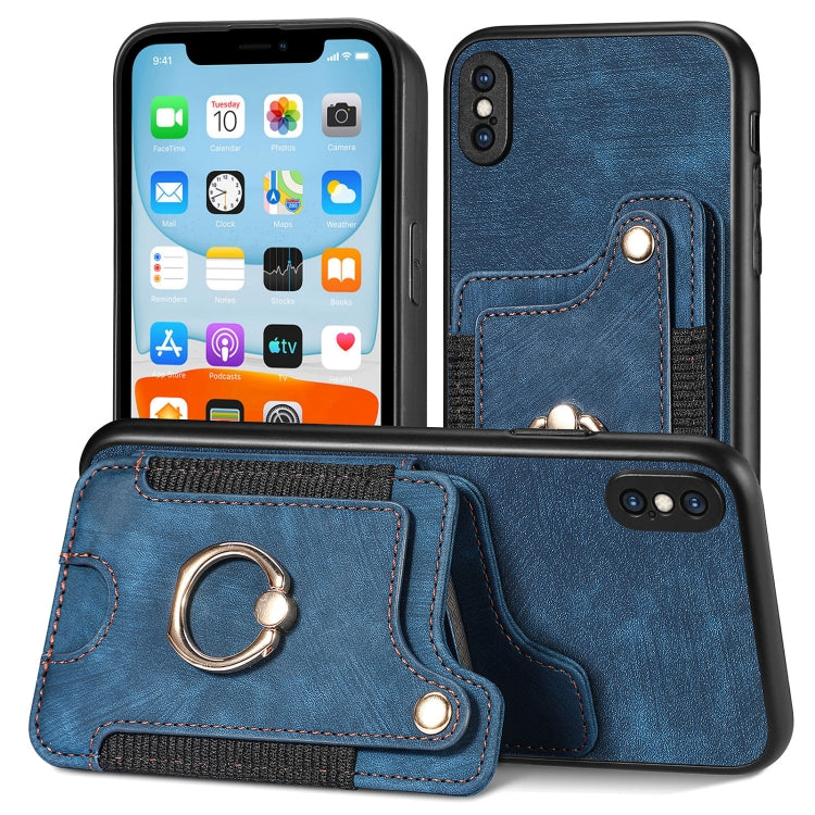 Funda para iPhone 7 Plus 8 Plus Retro Skin-Feel Ring Multi-Card Wallet (Azul)