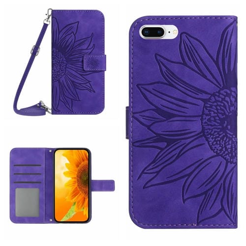 Funda de cuero para iPhone 7 Plus / 8 Plus Skin Feel con patrón Sun Flower y cordón (Púrpura Oscuro)