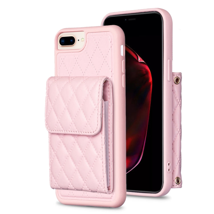 Funda para iPhone 7 Plus y 8 Plus Vertical Wallet Rhombic Leather Phone Case (Rosa)