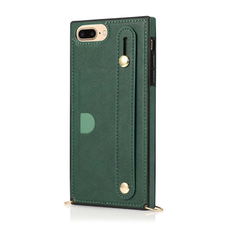 Funda Protectora para iPhone 8 Plus / 7 Plus Pu + TPU con Correa de Muñeca, Soporte y Ranura para Tarjeta (Verde)