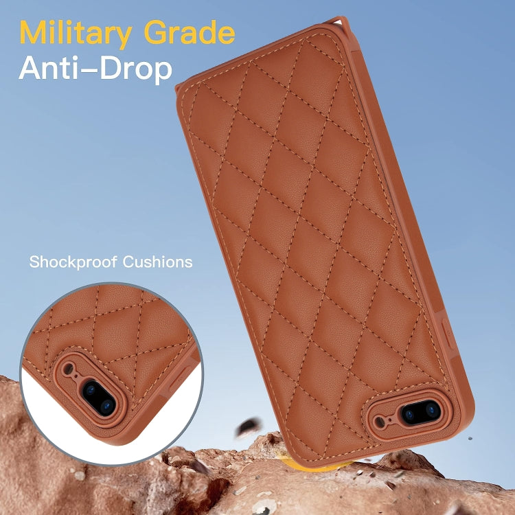 Funda para Teléfono iPhone 8 Plus/7 Plus Textura Rómbica y Cordón Doble (Marrón)