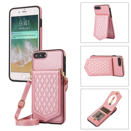 Funda para iPhone 8 Plus / 7 Plus Rhombic Texture Rfid con Cordón y Espejo (Oro Rosa)