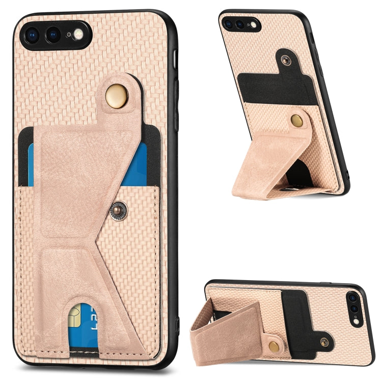 Funda de Teléfono iPhone SE 2022/2020/7/8 con Soporte K y Billetera Fibra de Carbono (Caqui)