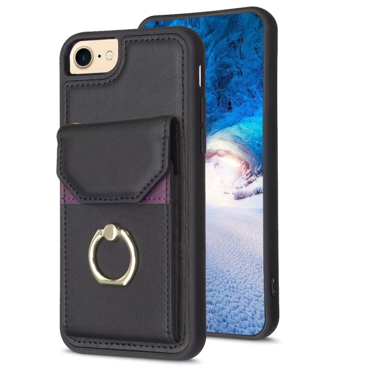 Funda para Teléfono Bf29 para iPhone SE 2022/2020/8/7 con Soporte para Anillo y Bolsa para Tarjeta de Órgano (Negro)