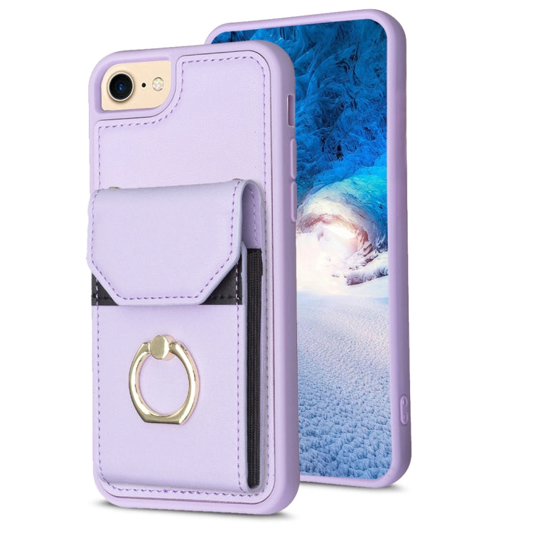 Funda para Teléfono Bf29 para iPhone SE 2022/2020/8/7 con Soporte para Anillo y Bolsa para Tarjeta de Órgano (Púrpura)