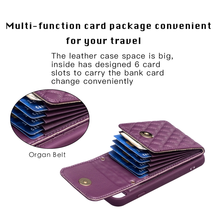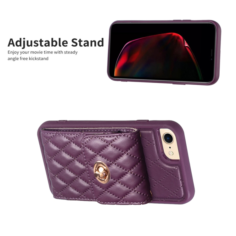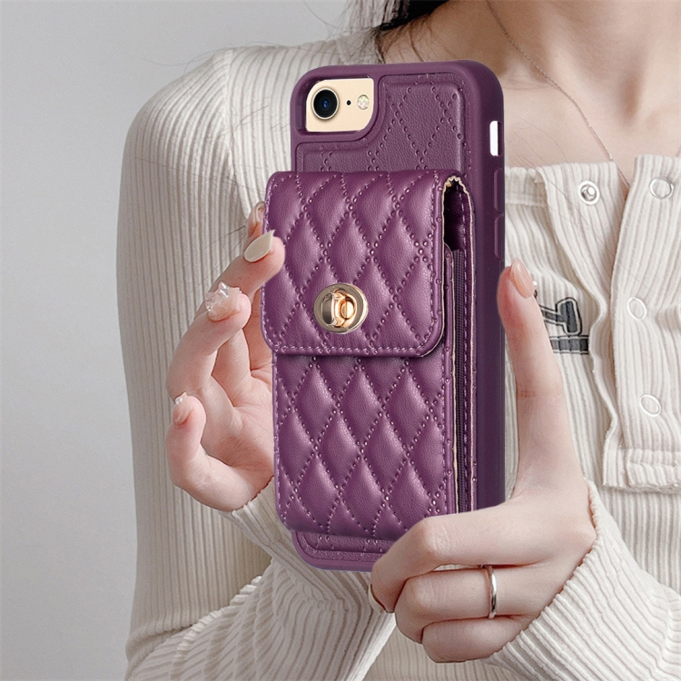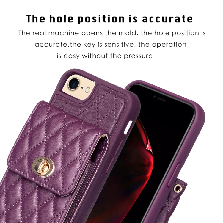 Estuche de Teléfono Cuero Rómbico con Hebilla de Metal Vertical para iPhone SE 2022 / SE 2020 / 7 / 8 (Púrpura Oscuro)