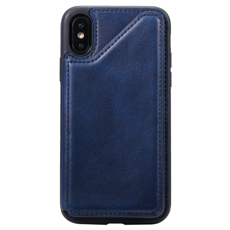 Estuche Protector para iPhone X Textura de Pantorrilla a Prueba de Golpes con Soporte y Ranuras para Tarjetas (Azul)