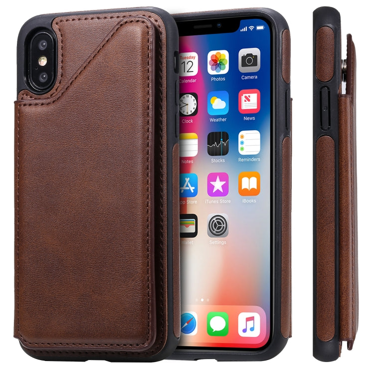 Estuche Protector para iPhone X Textura de Pantorrilla a Prueba de Golpes con Soporte y Ranuras para Tarjetas (Café)