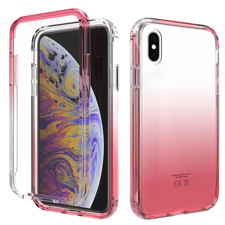 Funda Protectora para iPhone X Xs PC TPU Cambio Gradual Alta Transparencia a Prueba de Golpes (Rojo)