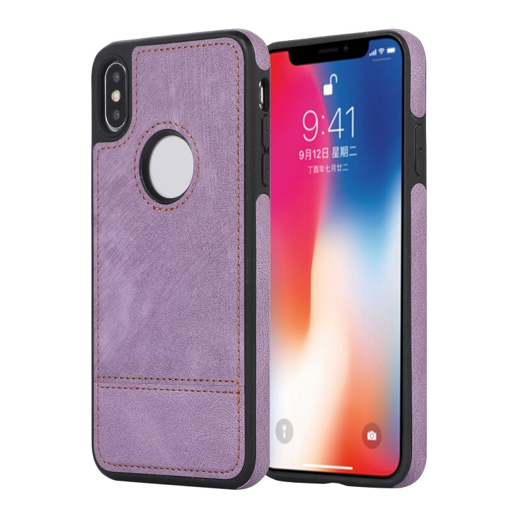 Funda para iPhone X Xs Empalme Costura Caja de Teléfono de PU con Recorte (Púrpura)