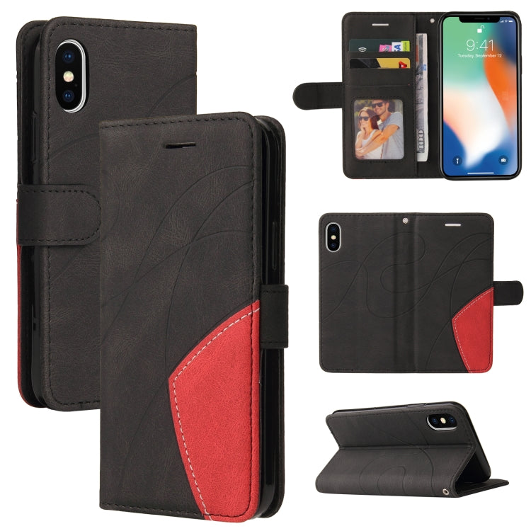 Estuche de Cuero PU para iPhone X Xs Tapa Horizontal Empalme Dos Colores Soporte Ranuras Tarjetas Billetera (Negro)