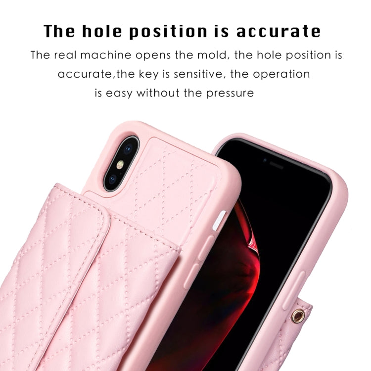 Estuche de teléfono iPhone X Xs Cuero Rómbico con Billetera Horizontal (Rosa)
