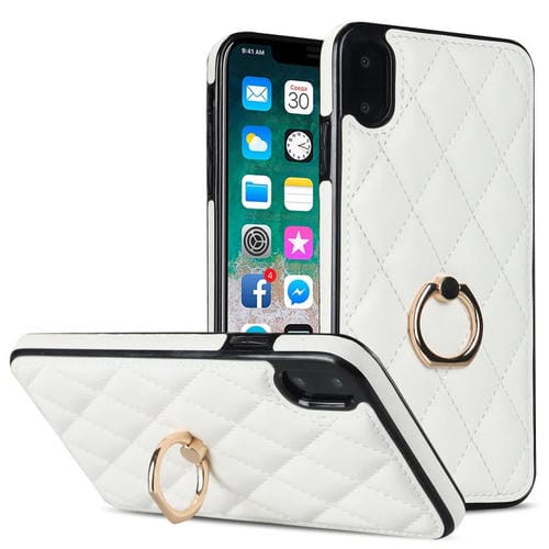 Estuche para Teléfono Cuero Pu Rombal para iPhone X Xs con Soporte para Anillo (Blanco)