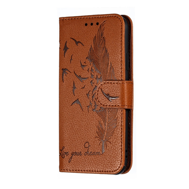 Funda de Cuero iPhone X Xs Feather Pattern Litchi Textura Tapa Horizontal Billetera Soporte Ranuras Tarjetas (Marrón)