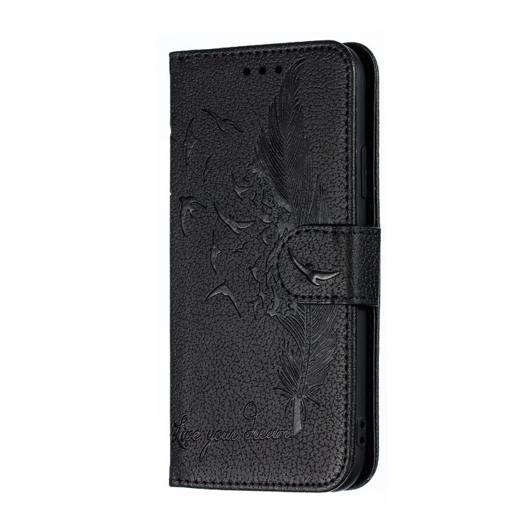 Funda de cuero iPhone X Xs Feather Pattern con tapa horizontal billetera soporte y ranuras para tarjetas (Negro)