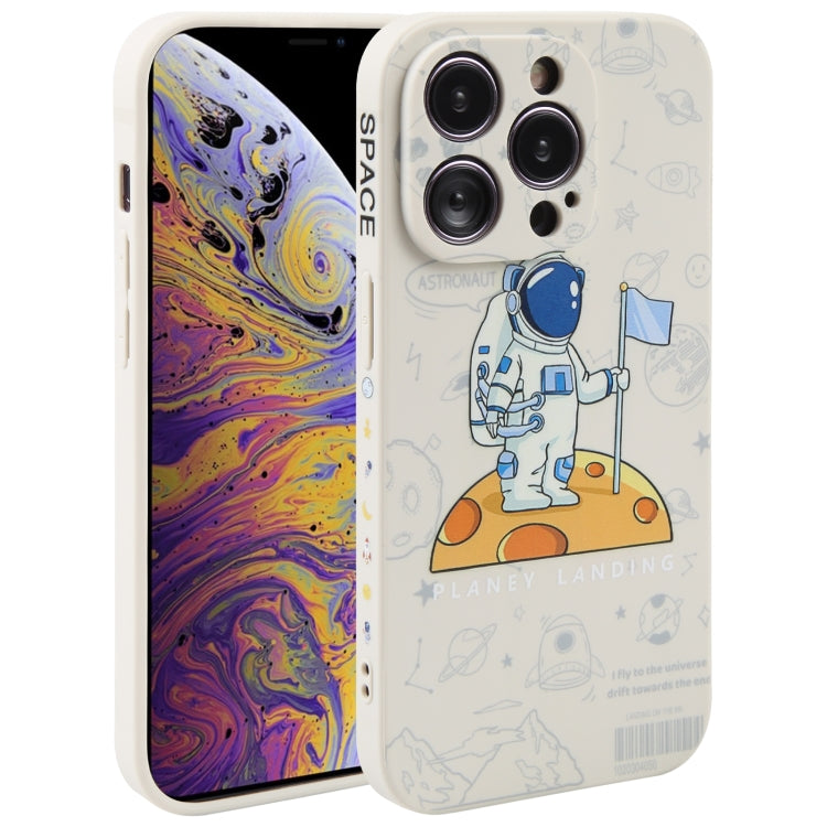 Funda de teléfono iPhone X Xs Patrón de Astronauta Borde Recto Silicona (Planet Landing-Blanco)