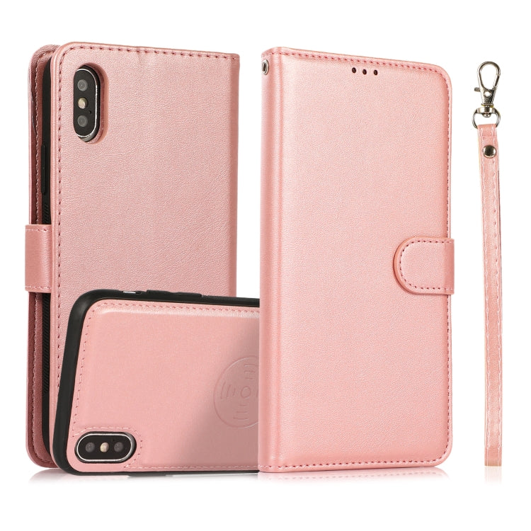Funda para iPhone X Xs Textura de Becerro 2 en 1 Cubierta Trasera Magnética Desmontable con Tapa Horizontal y Ranuras (Oro Rosa)