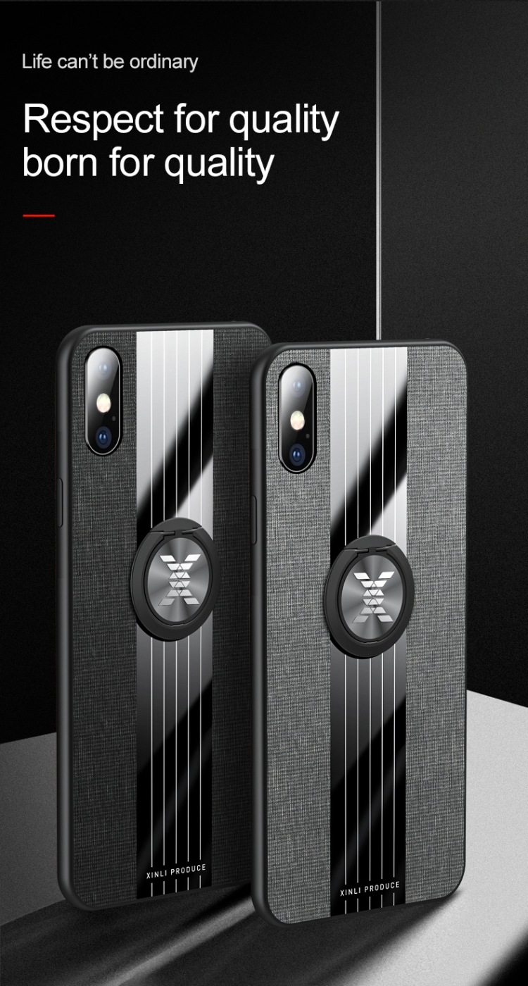 Estuche Protector TPU Xinli para iPhone X Xs Textura Tela Costura Soporte Anillo (Rojo)