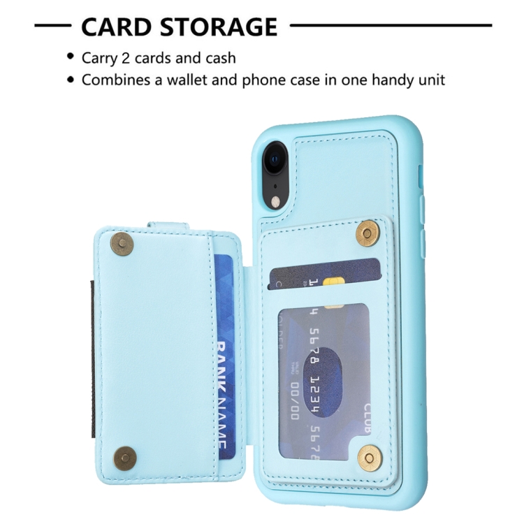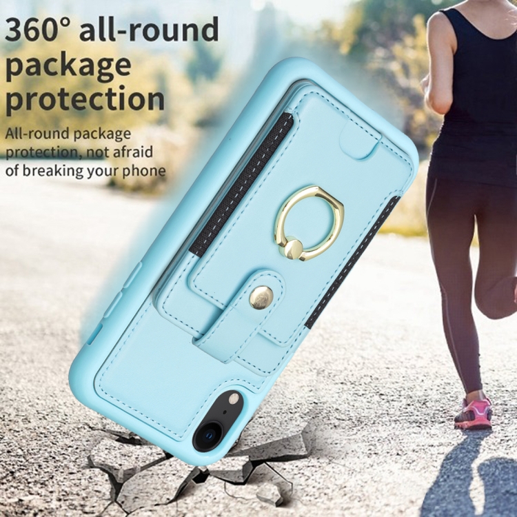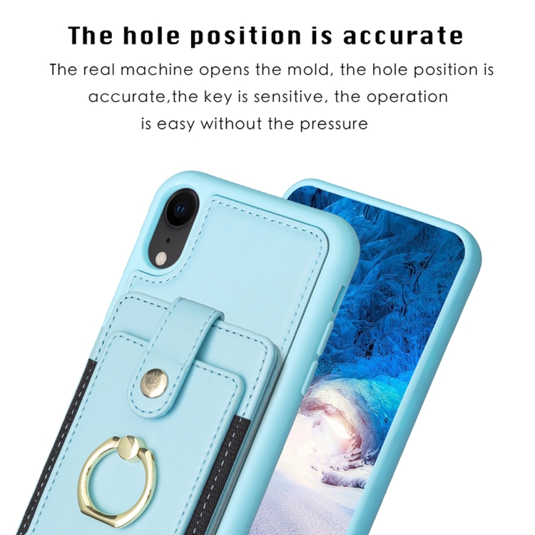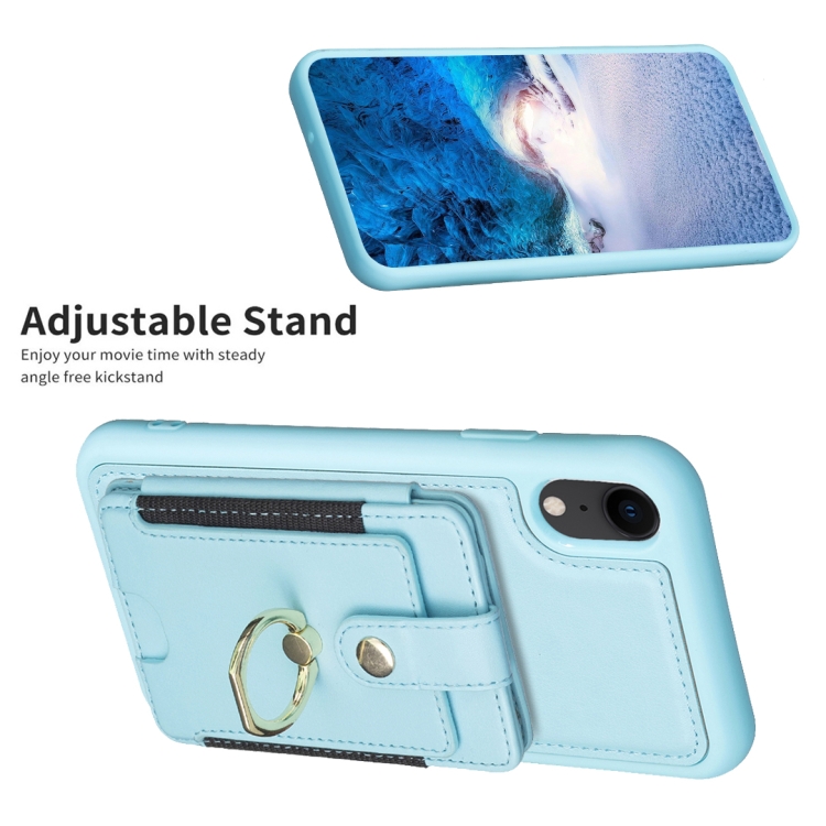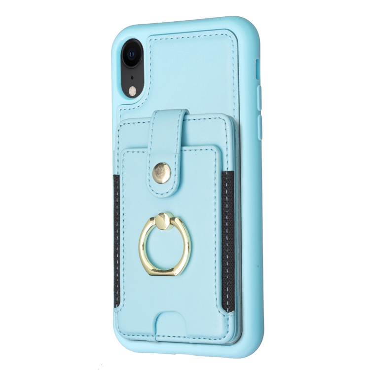 Funda de teléfono iPhone Xr Bf27 con soporte para tarjeta y anillo de metal (Azul)