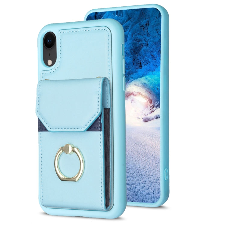 Funda para Teléfono Bf29 iPhone Xr con Soporte para Anillo y Bolsa para Tarjeta (Azul)