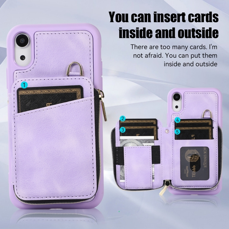 Funda Trasera para Teléfono iPhone Xr con Cremallera y Bolsa de Tarjeta (Púrpura)