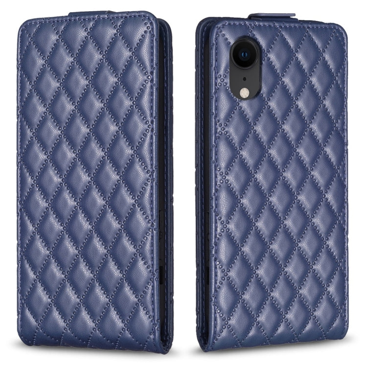 Funda para iPhone Xr Diamond Lattice de Cuero con Tapa Vertical (Azul)