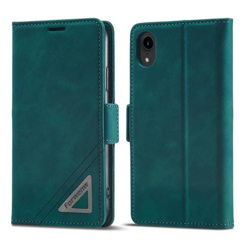 Funda de Cuero FoRWenw para iPhone Xr con Hebilla de Doble Cara (Cian Oscuro)