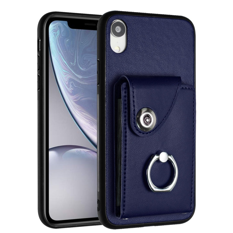 Funda para Teléfono iPhone Xr Soporte para Anillo Bolsa para Tarjeta (Azul)
