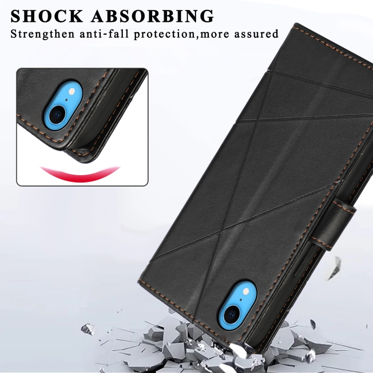Funda para teléfono iPhone Xr PU con línea en relieve y textura de cuero genuino (Negro)