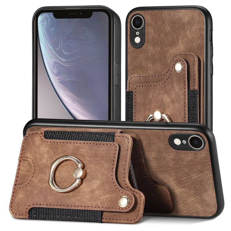 Funda para iPhone Xr Retro Skin-Feel Ring Multi-Card Wallet (Marrón)