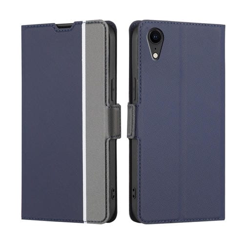 Funda para iPhone Xr Twill Texture Side Button Leather Phone Case (Azul)