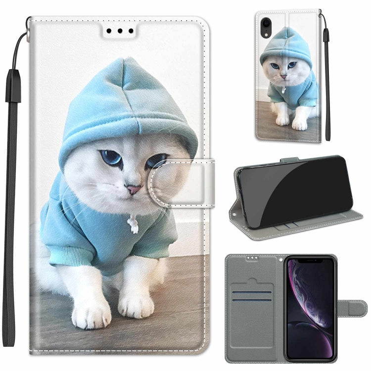 Funda para iPhone Xr Voltaje Dibujo Coloreado Cierre Magnético Cuero de Pu con Tapa Horizontal Soporte Ranuras para Tarjetas (Suéter Azul Gato Blanco)