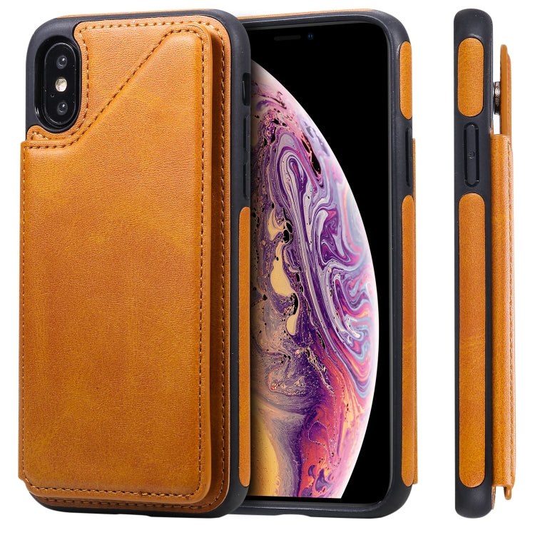 Funda Protectora para iPhone Xs con Textura de Pantorrilla a Prueba de Golpes Soporte y Ranuras para Tarjetas (Marrón)