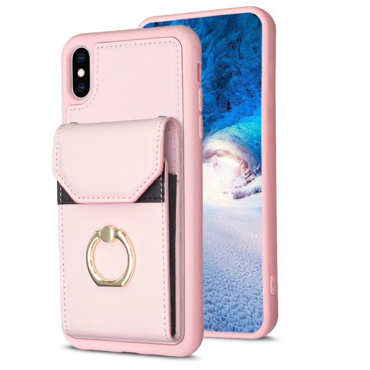 Funda para Teléfono Bf29 para iPhone Xs Max con Soporte para Anillo y Bolsa para Tarjeta (Rosa)