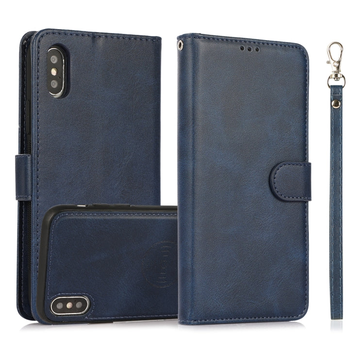 Cubierta Trasera iPhone Xs Max Calf Texture 2 en 1 magnética desmontable con tapa horizontal soporte ranuras tarjetas billetera marco fotos (Azul)