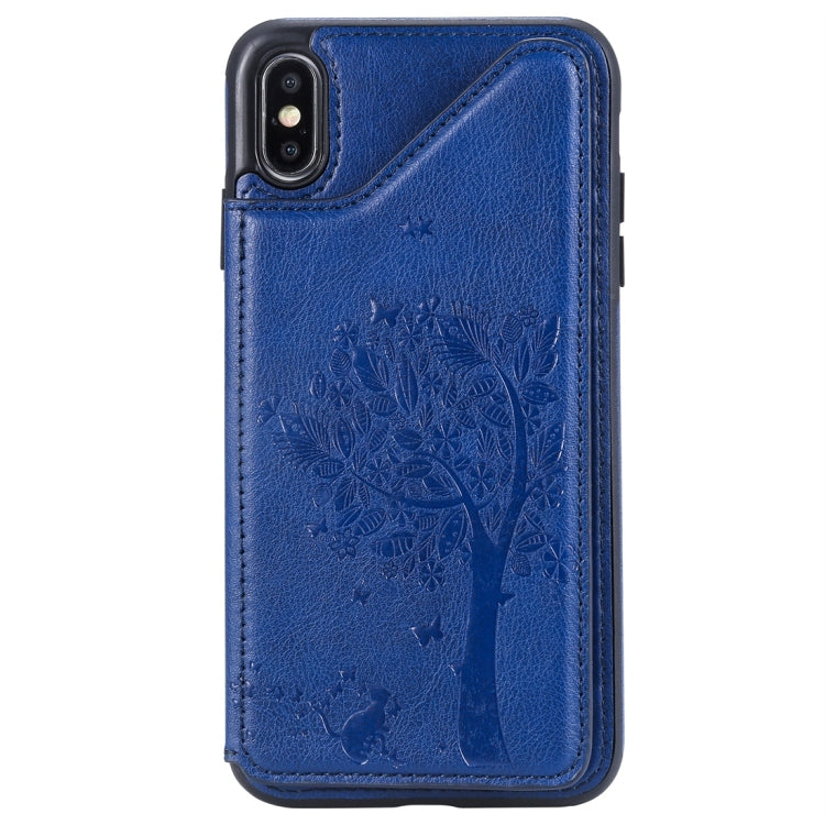 Funda Protectora para iPhone Xs Max Cat Tree Relieve Patrón a Prueba de Golpes con Ranuras para Tarjetas y Marco de Fotos (Azul)