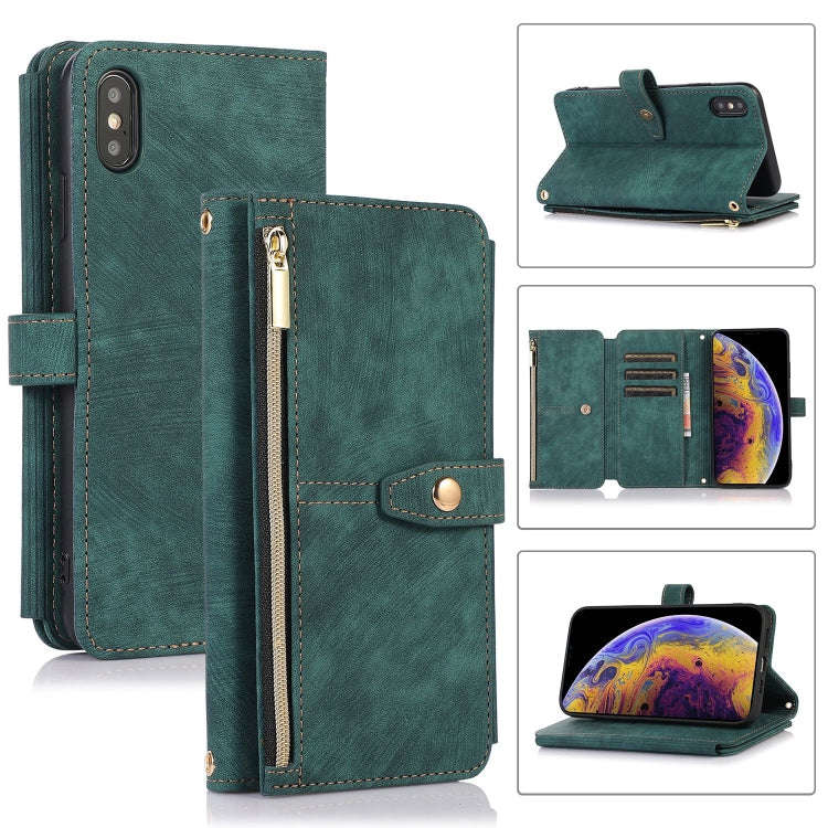 Funda para Teléfono iPhone Xs Max Dream 9-Card Wallet Zipper Bag de Cuero (Verde)