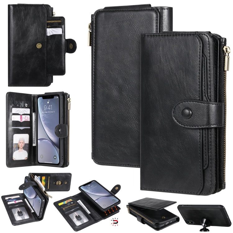 Estuche de Cuero para iPhone Xs Max con Tapa Horizontal Magnética Desmontable Multifuncional Ranuras para Tarjetas Soporte Billetera y Marco de Fotos (Negro)