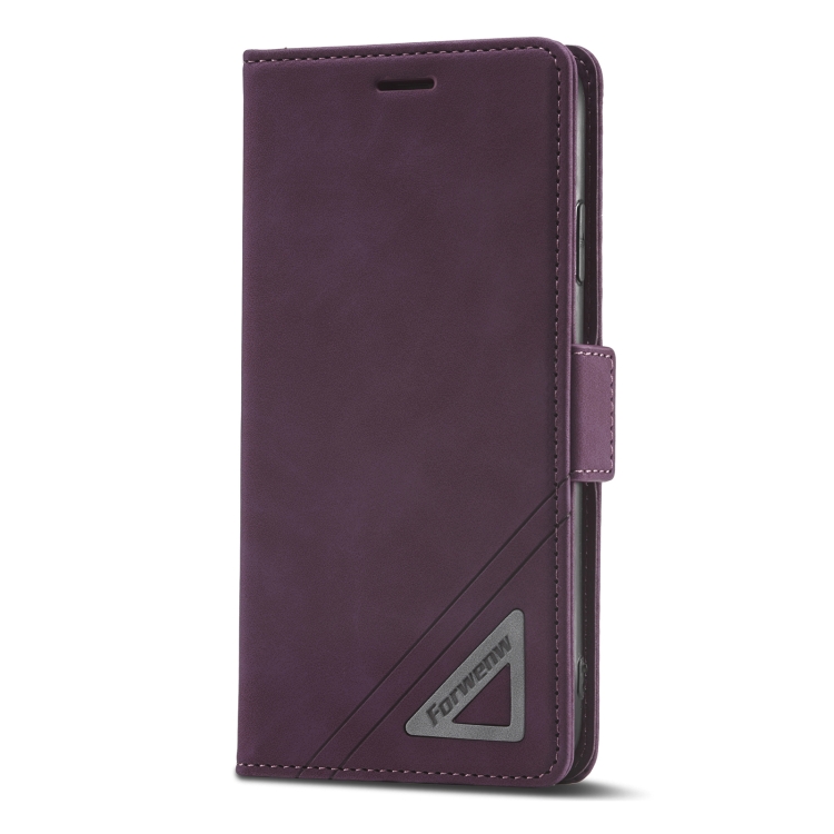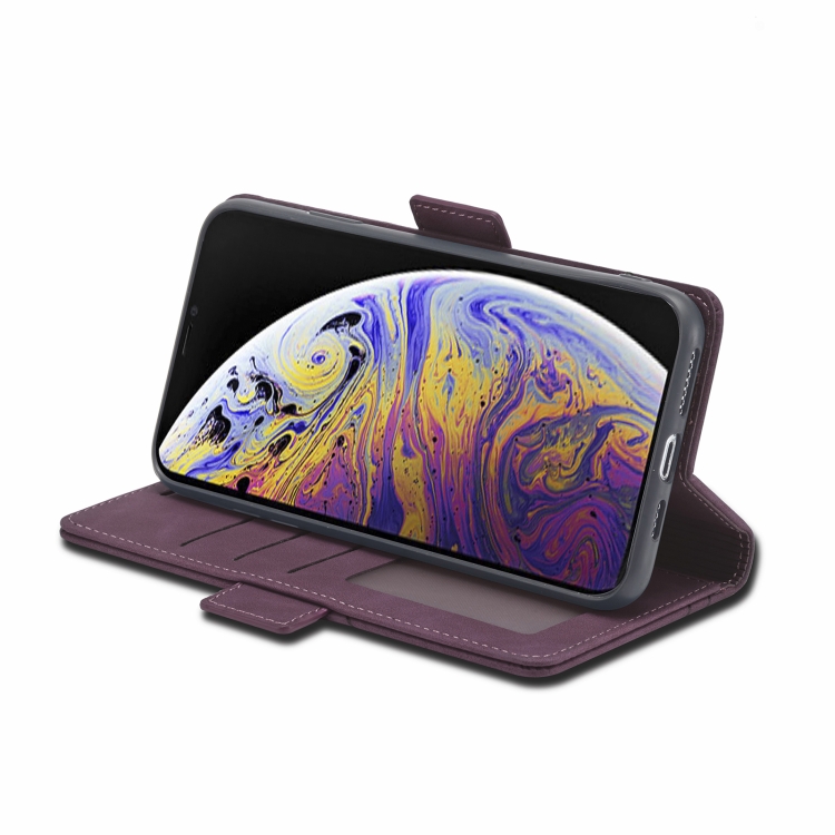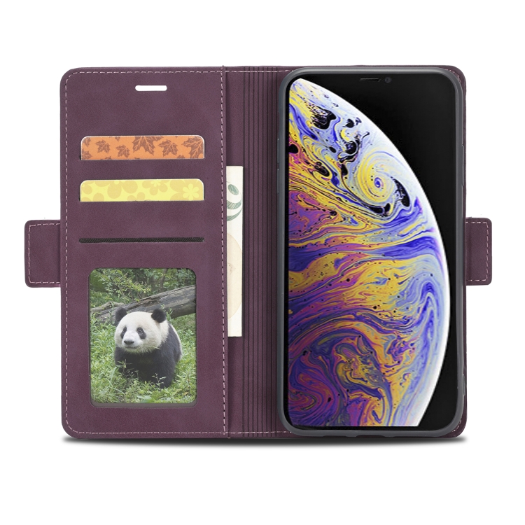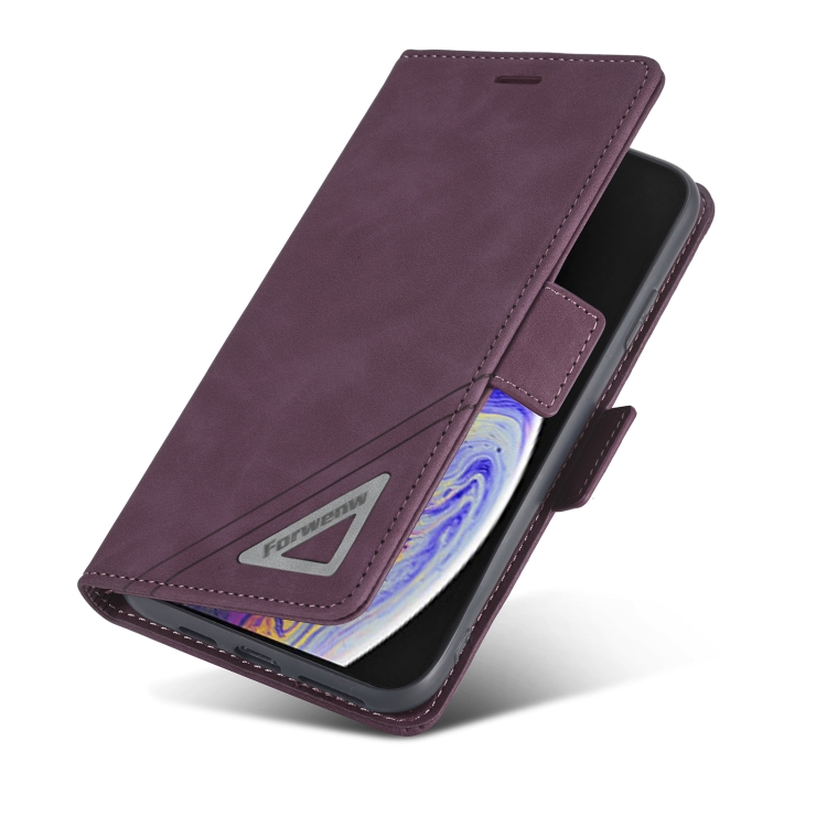 Estuche de Cuero FoRWenw para iPhone Xs Max con Hebilla de Doble Cara (Rojo Vino)