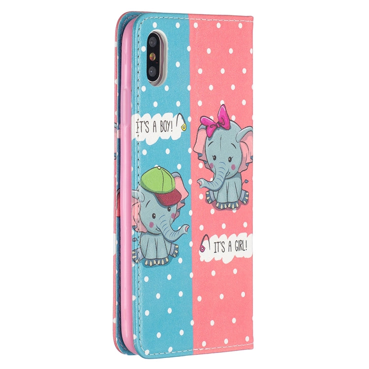 Estuche de Cuero de Pu para iPhone Xs Max con Tapa Horizontal Magnética Invisible Soporte y Ranuras para Tarjetas (Elefante)