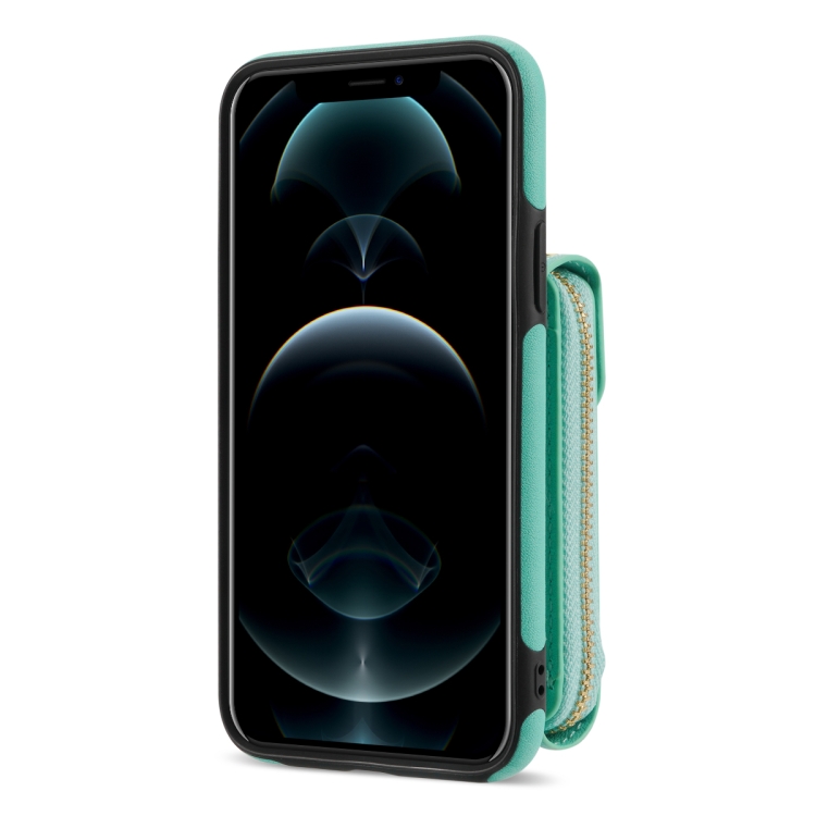 Funda para iPhone Xs Max Zipper Hardware Card Wallet Phone Case (Verde Menta)