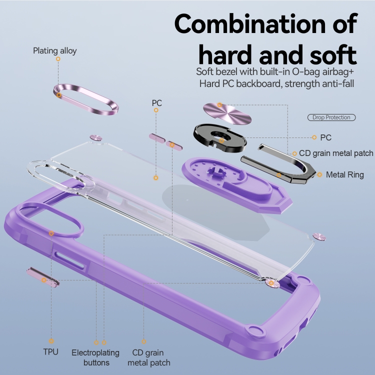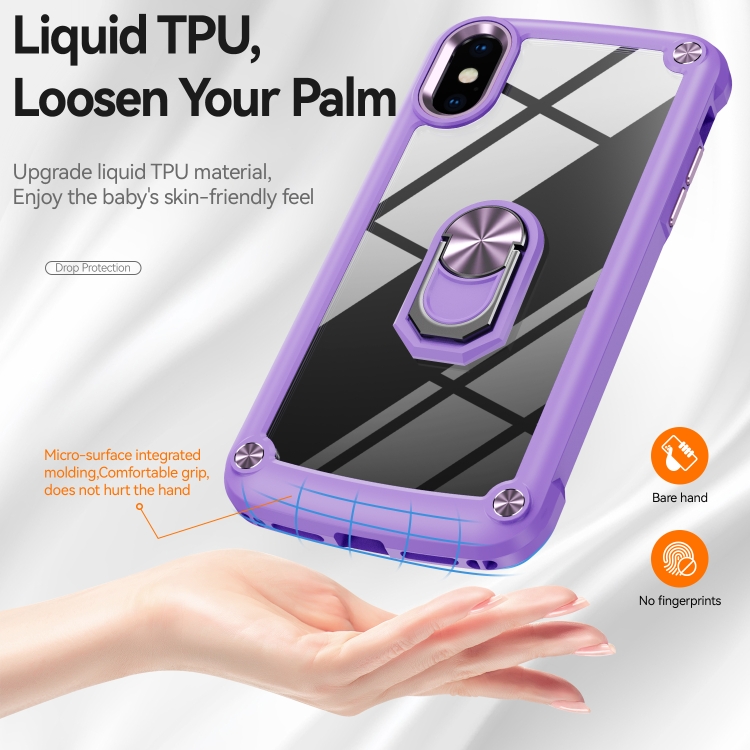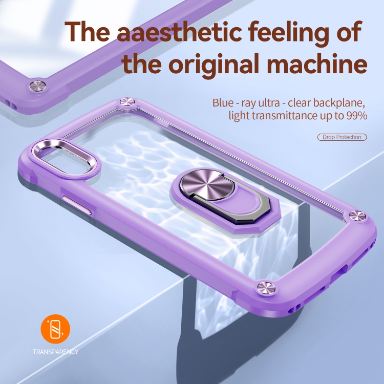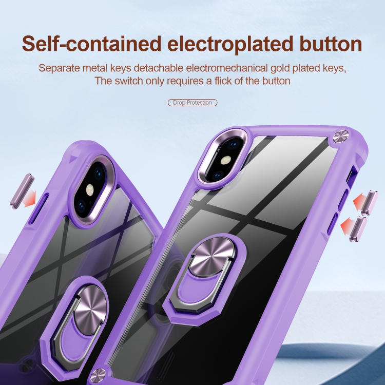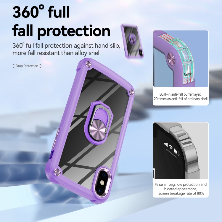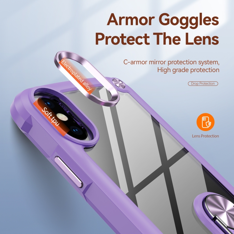 Estuche para Teléfono iPhone Xs / X TPU + PC con Protección de Lente y Soporte para Anillo (Púrpura)