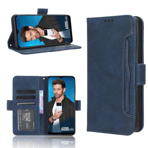 Funda de Cuero para Itel P40 con Textura Skin Feel y Ranuras para Tarjetas (Azul)