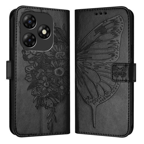 Funda de Cuero para Itel P55 4G con Mariposa en Relieve (Negro)