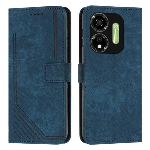 Funda de Cuero Skin Feel para Itel P55 5G con Patrón de Rayas y Cordón (Azul)