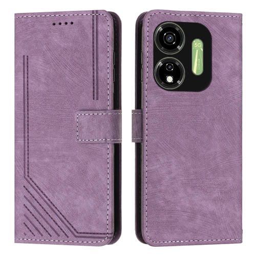 Funda de Cuero Itel P55 5G Skin Feel con Patrón de Rayas y Cordón (Púrpura)