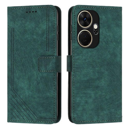 Funda de Cuero para Itel P55 con Patrón de Rayas Skin Feel y Cordón (Verde)