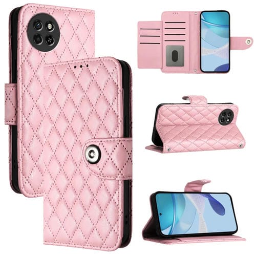 Funda para Itel S23 S665L con Tapa de Cuero, Textura Rómbica y Cordón (Rosa)